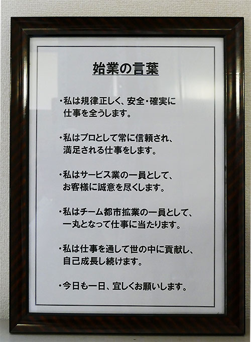 (部屋に掲げられている始業の言葉)
